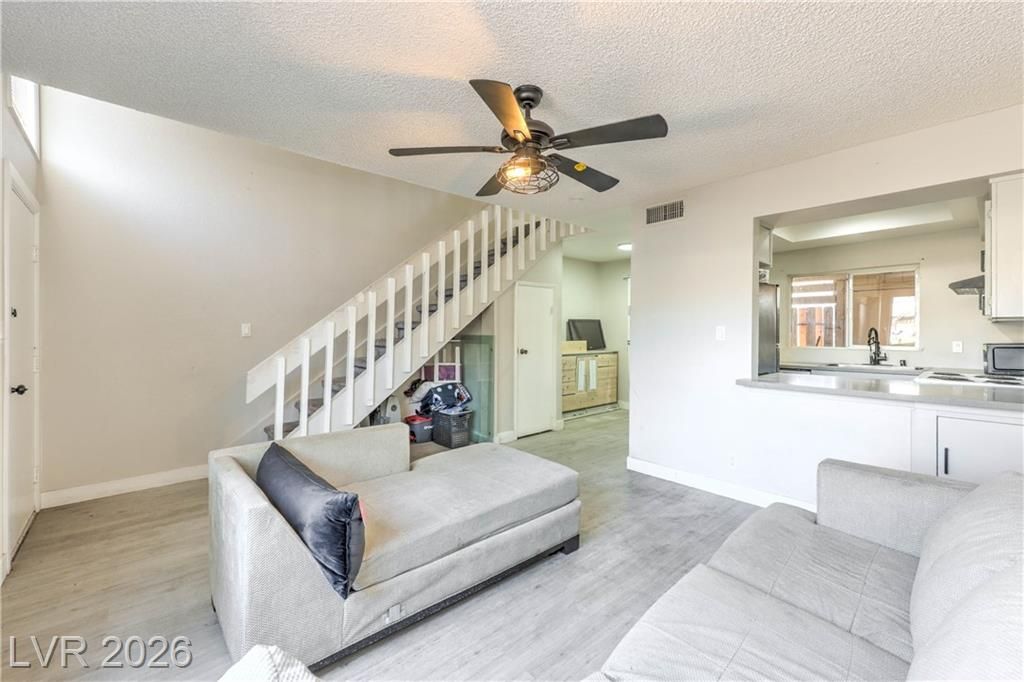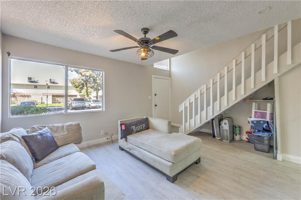 Charming 2-story townhome featuring a unique loft-style 1 bed, 1 bath layout with an open-concept design that feels bright and spacious. This property offers incredible potential for a first-time buyer or savvy investor looking to add value. Upgrades include luxury vinyl plank flooring and custom quartz countertops, giving the home a modern touch. The upstairs loft bedroom provides a private retreat separate from the main living area. Enjoy a private covered, enclosed patio?perfect for relaxing or additional storage. Located in a community with a pool and conveniently close to shopping, dining, and easy highway access. Priced to sell and full of opportunity?bring your vision and make this home your own!